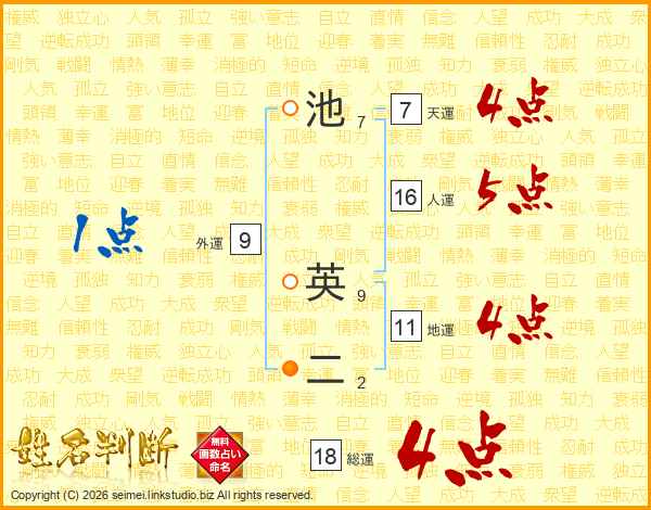 池英二さんの総運は18画の4点!