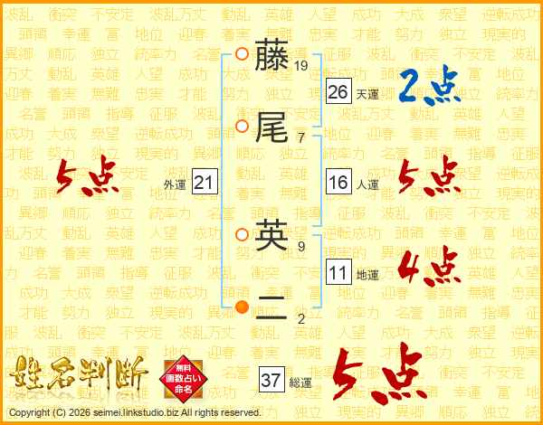 藤尾英二さんの外運は21画の5点!