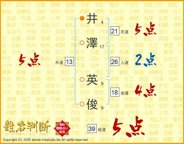 井澤英俊さんの総運は39画の5点!