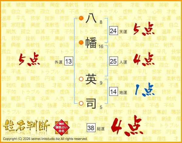 八幡英司さんの総運は38画の4点!