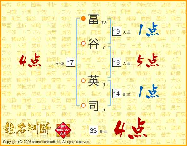 冨谷英司さんの総運は33画の4点!