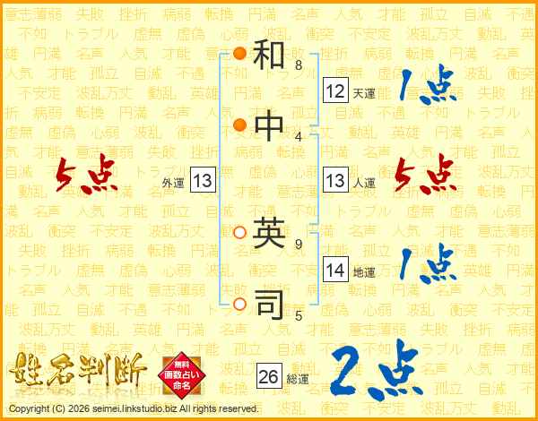 和中英司さんの人運は13画の5点!