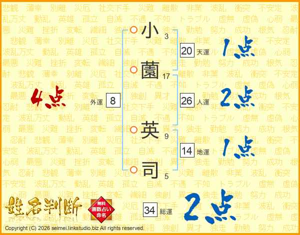 小薗英司さんの総運は34画の2点!