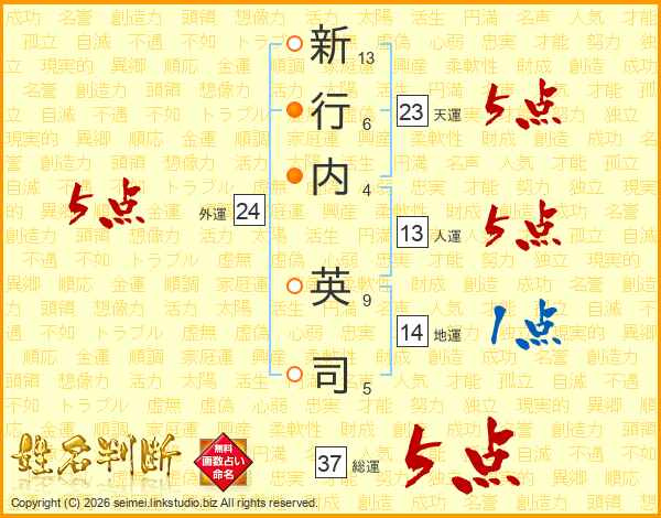 新行内英司さんの総運は37画の5点!