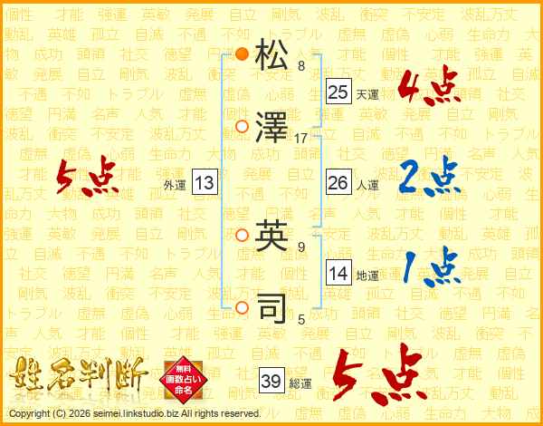 松澤英司さんの総運は39画の5点!