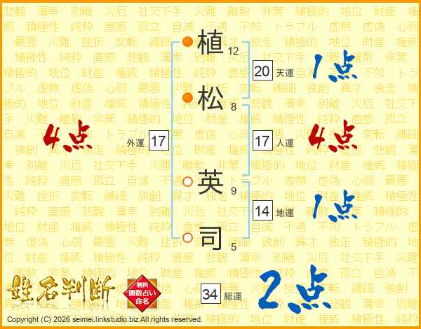 植松英司さんの総運は34画の2点!