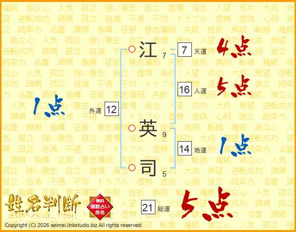 江英司さんの総運は21画の5点!