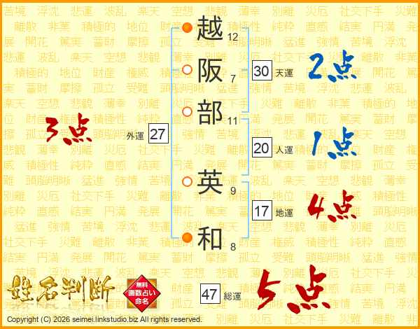 越阪部英和さんの総運は47画の5点!