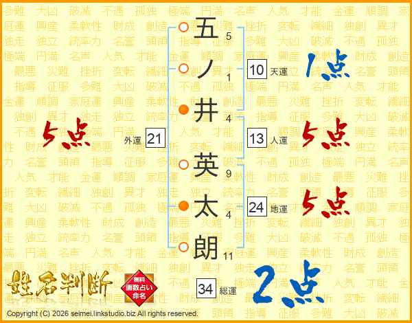 五ノ井英太朗さんの総運は34画の2点!