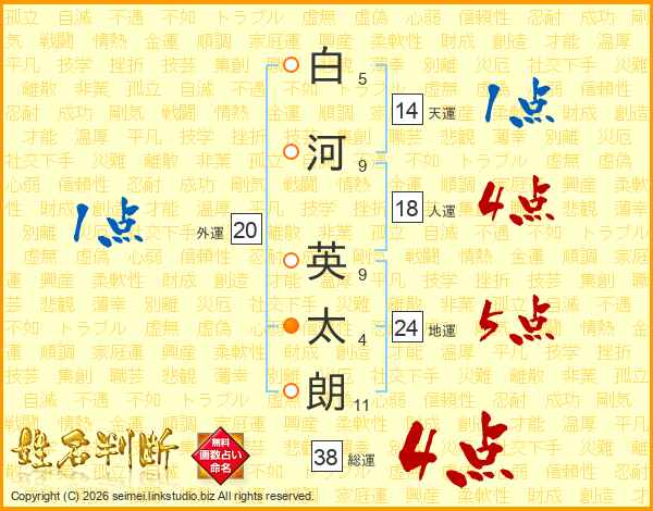 白河英太朗さんの総運は38画の4点!