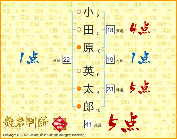 小田原英太郎さんの総運は41画の5点!