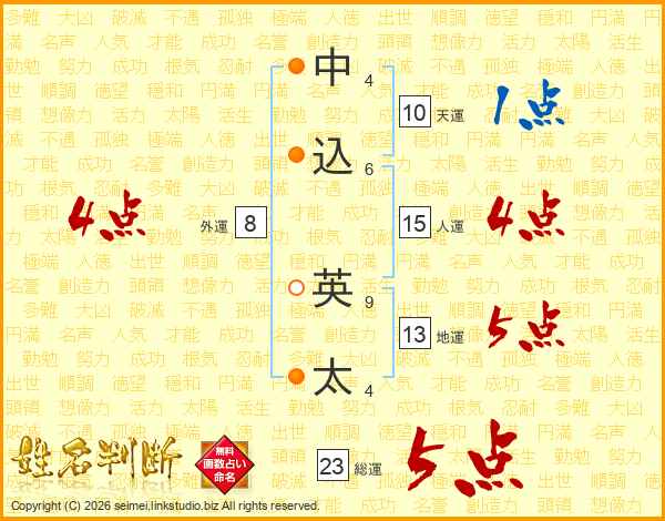 中込英太さんの地運は13画の5点!