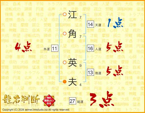 江角英夫さんの天運は14画の1点!