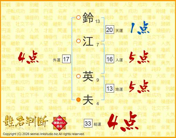 鈴(13画)江(7画) 英(9画)夫(4画)