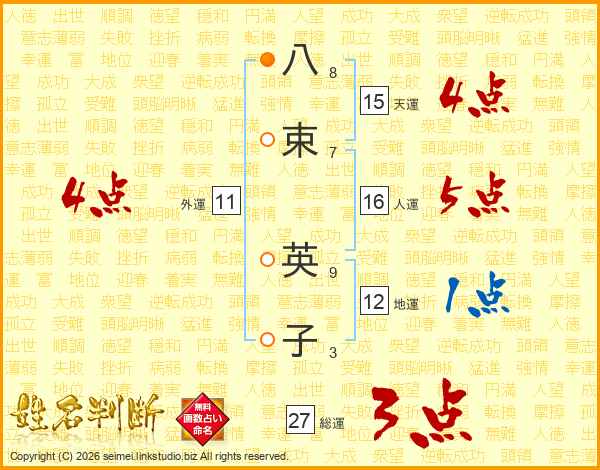 八束英子さんの総運は27画の3点!
