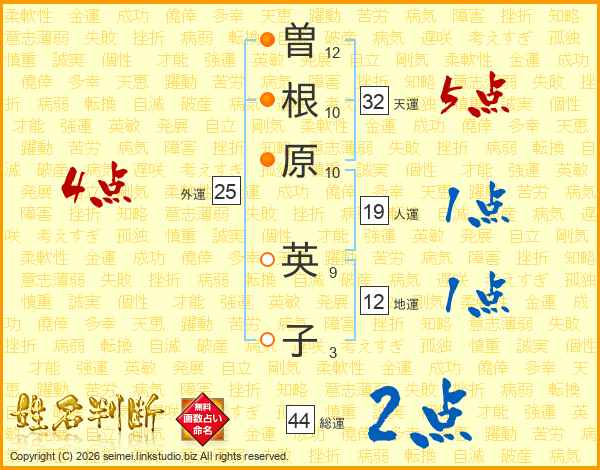 曽根原英子さんの天運は32画の5点!
