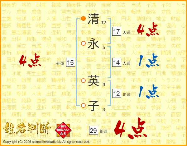 清永英子さんの総運は29画の4点!