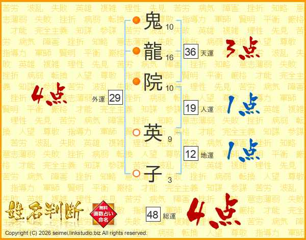 鬼龍院英子さんの総運は48画の4点!