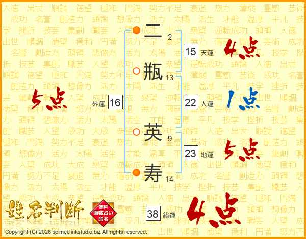 二瓶英寿さんの総運は38画の4点!