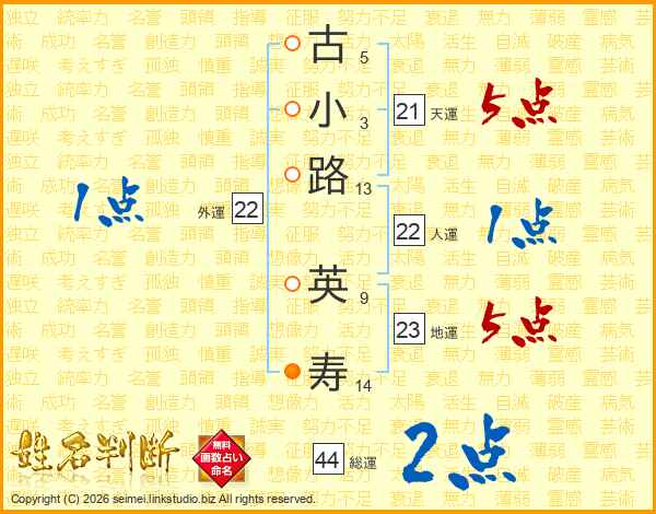 古(5画)小(3画)路(13画) 英(9画)寿(14画)