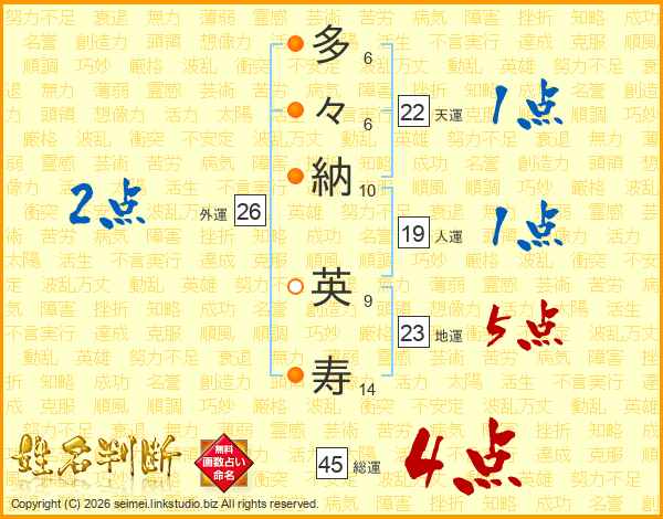 多々納英寿さんの総運は45画の4点!