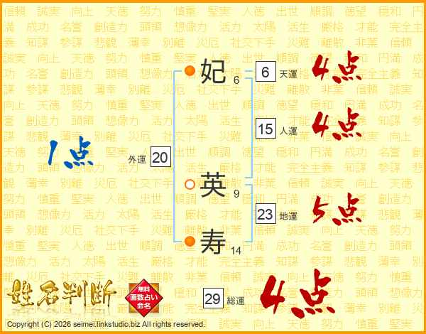 妃英寿さんの総運は29画の4点!