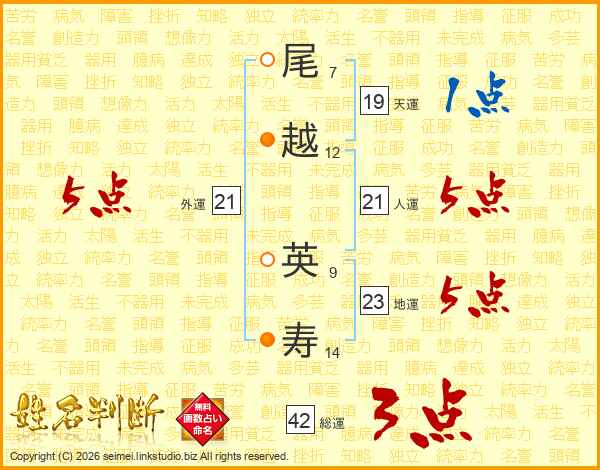 尾越英寿さんの人運は21画の5点!