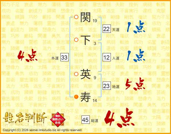 関下英寿さんの総運は45画の4点!