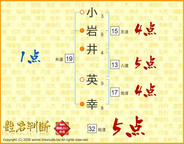 小(3画)岩(8画)井(4画) 英(9画)幸(8画)