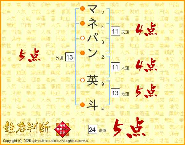 マ(2画)ネ(4画)パ(3画)ン(2画) 英(9画)斗(4画)