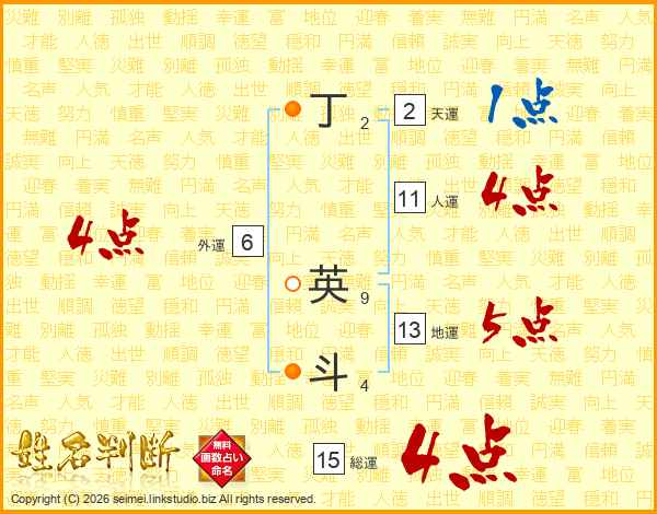 丁英斗さんの総運は15画の4点!
