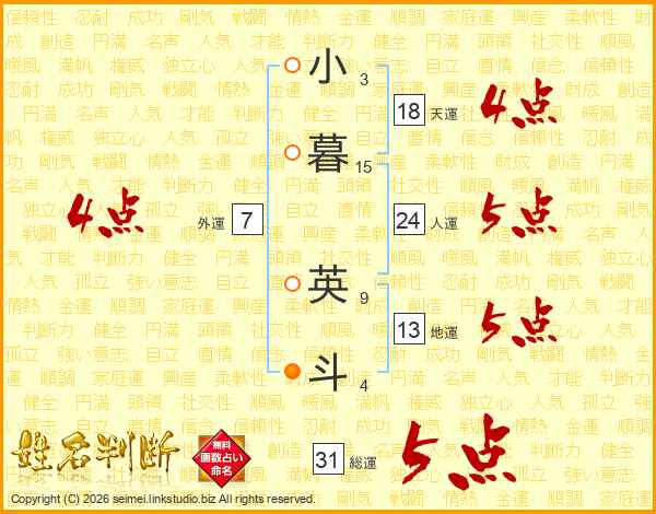 小暮英斗さんの総運は31画の5点!