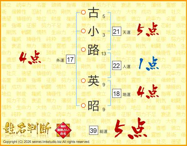 古(5画)小(3画)路(13画) 英(9画)昭(9画)