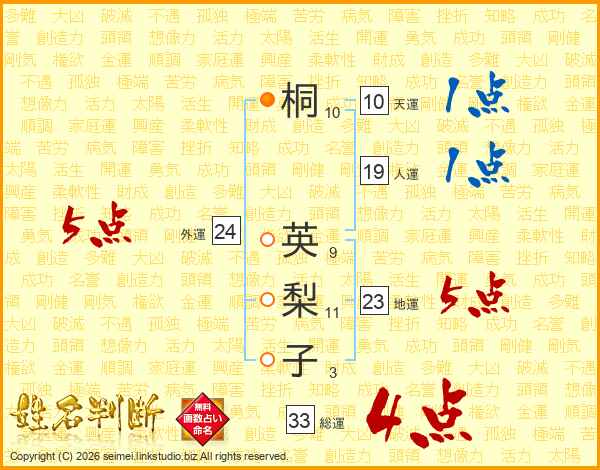 桐英梨子さんの総運は33画の4点!