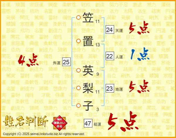 笠置英梨子さんの総運は47画の5点!