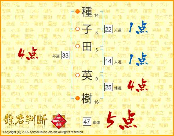 種子田英樹さんの総運は47画の5点!