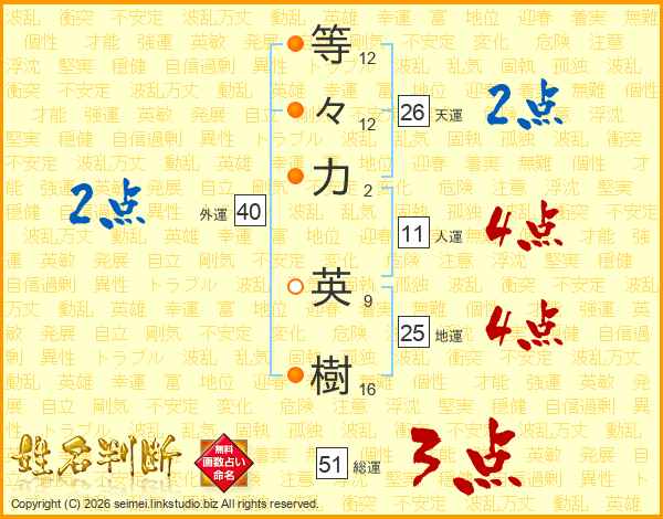 等々力英樹さんの天運は26画の2点!