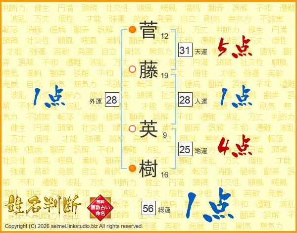 菅藤英樹さんの総運は56画の1点!