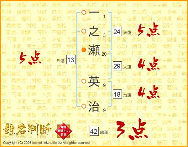 一之瀬英治さんの外運は13画の5点!