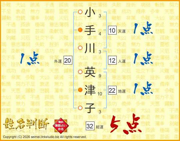 小手川英津子さんの総運は32画の5点!