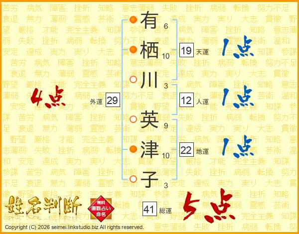 有栖川英津子さんの総運は41画の5点!
