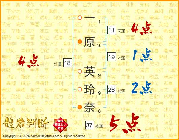 一原英玲奈さんの総運は37画の5点!