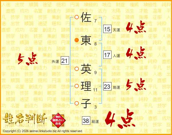 佐東英理子さんの外運は21画の5点!
