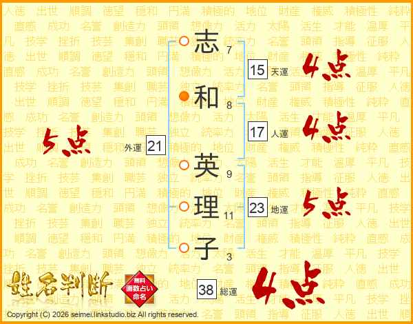 志和英理子さんの総運は38画の4点!