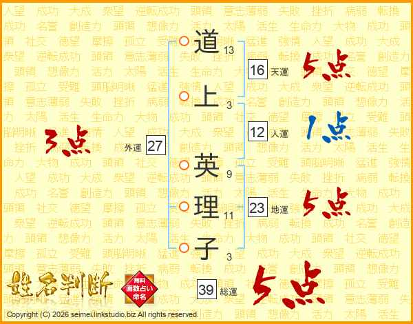 道上英理子さんの総運は39画の5点!
