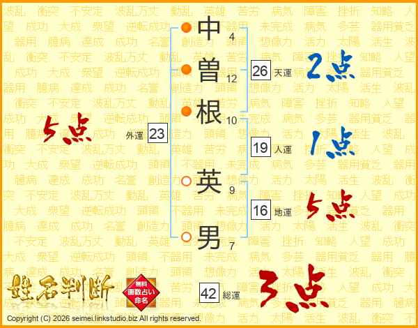 中曽根英男さんの天運は26画の2点!