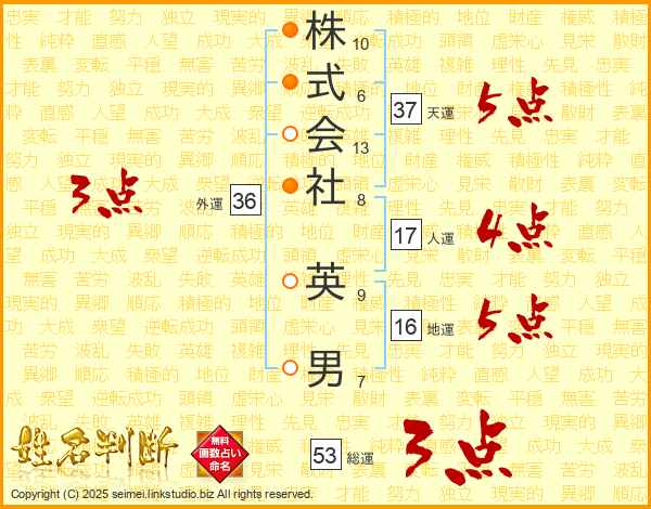 株(10画)式(6画)会(13画)社(8画) 英(9画)男(7画)