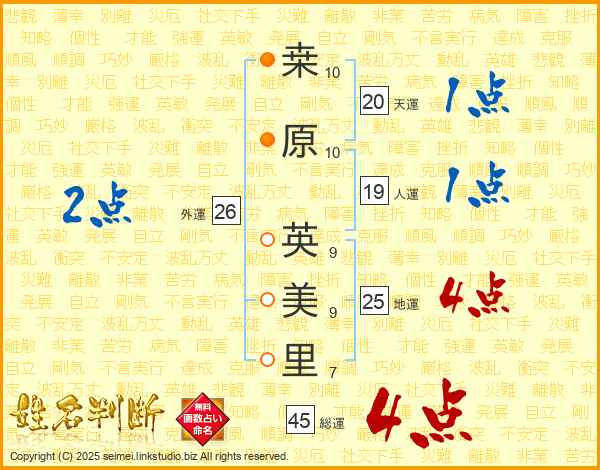 桒(10画)原(10画) 英(9画)美(9画)里(7画)