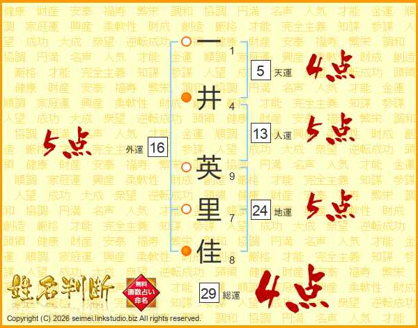 一井英里佳さんの総運は29画の4点!