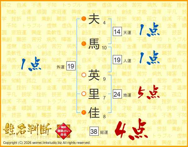 夫馬英里佳さんの総運は38画の4点!